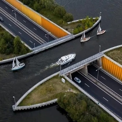 (ویدئو) شاهکار مهندسی هلند؛ جایی که کشتیها از روی اتوبان عبور میکنند! آبگذر ولئومیر شما را مات و مبهوت میکند