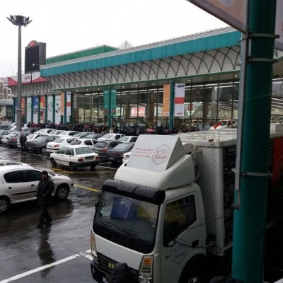 صف طولانی خرید گوشت زیر بارش شدید باران
