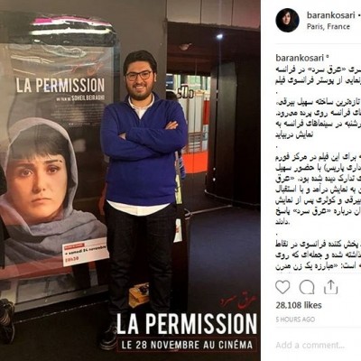 ژست باران کوثری کنار پوستر خودش در فرانسه