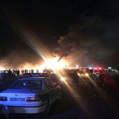 تصادف مرگبار تانکر سوخت با اتوبوس تهران به کرمان در جاده نطنز