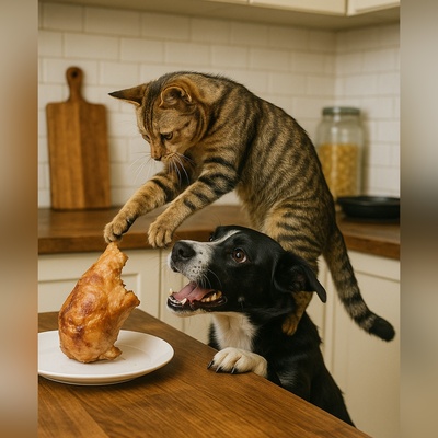 دست به یکی شدن باورنکردنی سگ و گربه برای دزدی غذا از آشپزخانه / عملیات ویژه کبری 11؛ مگه میشه مگه داریم؟
