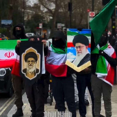 (فیلم) اهتزاز پرچم ایران و برافراشتن تصویر رهبر انقلاب در قلب انگلیس، لندن برای حمایت از مردم ایران