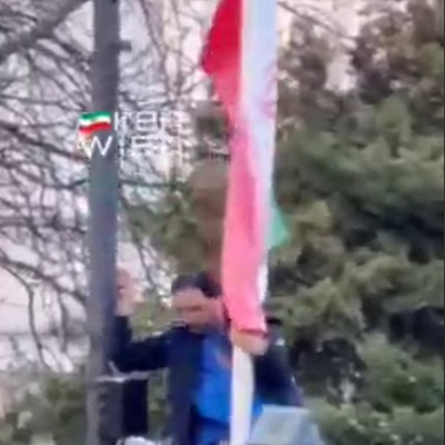 فیلم | سلطنت طلبی که میخواست به پرچم ایران جسارت کند توسط پلیس اتریش ادب شد؛ بسوز ای سعی باطل این پرچم نمیافتد