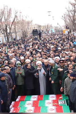 بدرقه با شکوه شهدای حملات دشمن صهیونی - آمریکایی در تبریز / آذربایجان جانباز، خامنهای دن آیریلماز
