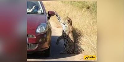 بازی بامزه «پلنگ» با تصویر بازتابشده خودش روی بدنه خودرو!