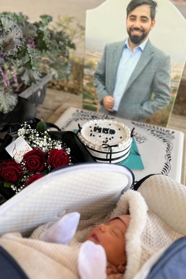 دلنوشته احساسی همسر علیرضا تنابنده برادرزاده شهید محسن تنابنده برای عشق زندگی اش: گفتی آرزوم اینه بچه دار بشیم ، علی جانم آرزوت برآورده شد،امروز اومدم پیشت با یه تیکه از خودت…💔😭
