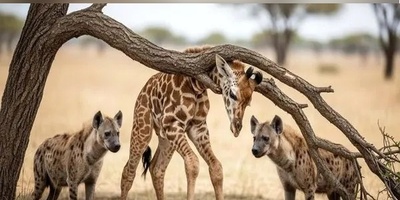 ویدئوی حیات وحش روز؛ این ماجرای راز بقا: لحظهای نفسگیر در طبیعت؛ تلاش مادر برای نجات بچهزرافه از حمله کفتارها
