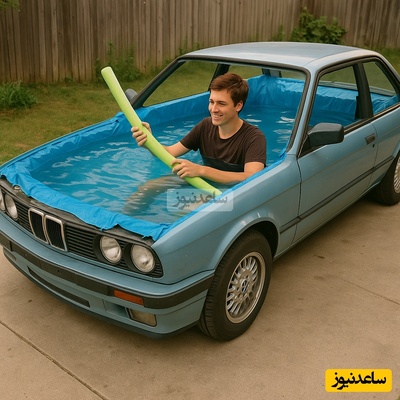 خلاقیت تحسین برانگیز پسر زرنگ برای تبدیل ماشین پدربزرگش به یک استخر سیار خفن / ایلان ماسک هم تو کف استعداد این جوان موند + ویدئو