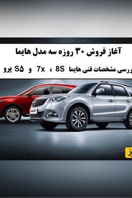 آغاز فروش تحویل فوری سه مدل هایما از امروز / صفر تا صد بررسی مشخصات فنی هایما 7x ،8S و S5 پرو + قیمت