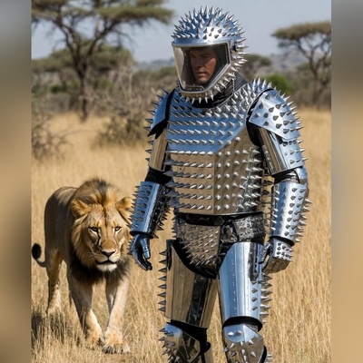 (ویدئو) با پوشیدن این لباس شما هم میتوانید به شیرها غذا بدهید! تصویرسازی خلاقانه از حیات وحش
