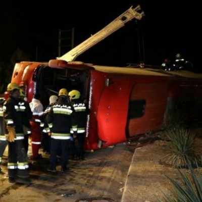 واژگونی اتوبوس مسافربری تهران - اردبیل در زنجان