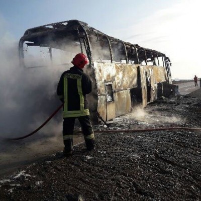 آتش سوزی اتوبوس زائران اربعین در فارس 6 زائر زخمی شدند