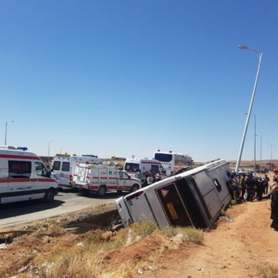واژگونی اتوبوس کارکنان شرکت نفت با ١ کشته و ٢٢ مصدوم