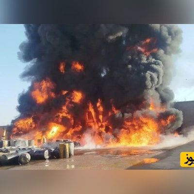 ببینید| آتشسوزی وحشتناک در کارگاه فرآوردههای نفتی شرق اصفهان/ چه شعلهای میکشه!