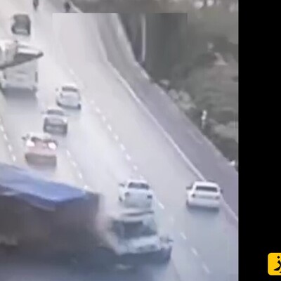 تصادف عجیب کامیون در اصفهان/ دیدین کامیون چه پرشی کرد؟