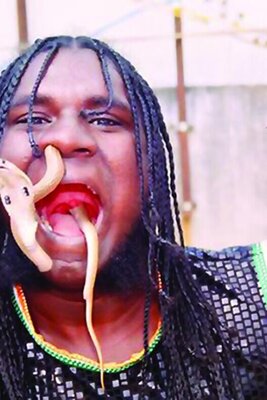 عبور دادن مار افعی سمی و دراز از دهان و دماغ/ تصاویر سوپر چندش از یک رکورد جهانی