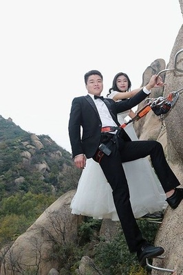 ازدواج عجیب یک عروس و داماد در میان صخره های کوهی در چین