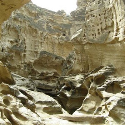 صخره های دیدنی دره چاه کوه واقع در جزیره قشم