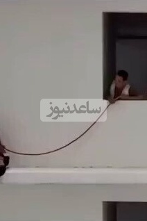 خلاقیت خطرناک دختر جوان روی سیمهای معلق بین ساختمان+ویدئو /بنازم به این ذهن مریض
