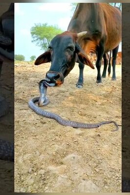 فیلم معاشقه یک گاو با یک مار کبری!/با گوساله اش اشتباه گرفته!