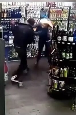 صحنه درگیری جانانه کارمند فروشگاهی با سارقان مسلح + فیلم