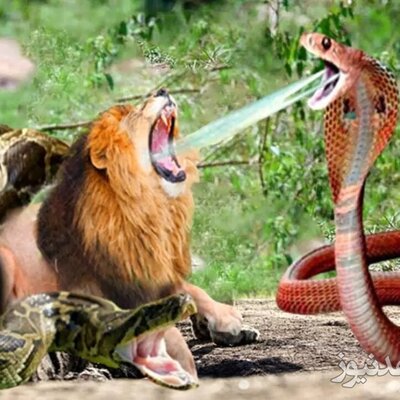 فیلم مبارزه جانانه شیرها با مار پیتون غول پیکر