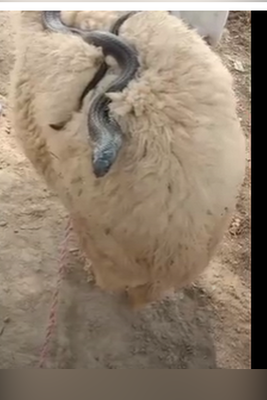 فیلم استراحت یک مار خطرناک روی بدن یک گوسفند چاق