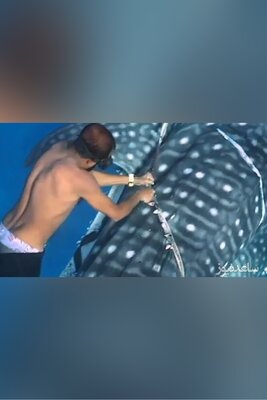 (ویدئو) نجات کوسه گرفتار در طناب پلاستیکی