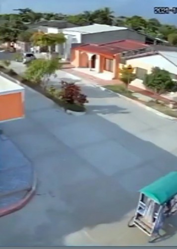 (فیلم) حمله گاو به یک موتورسوار و ورودش به فروشگاه مواد غذایی