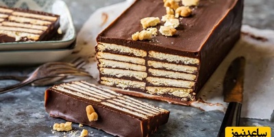 شیرینی بدون فر / طرز تهیه کیک یخچالی بیسکویتی خوشمزه فقط با چند قلم مواد اولیه ساده + ویدئو