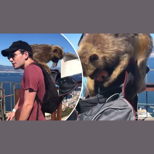 (فیلم) سرقت میمونها از یک خانواده بریتانیایی در بالای صخره