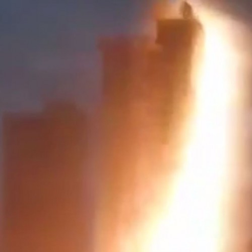 (فیلم) لحظه برخورد صاعقه با یکی از آسمانخراشهای چین