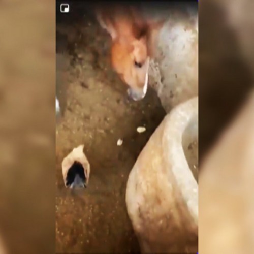 (فیلم) جفتک فراموش نشدنی گاو به صورت سگ