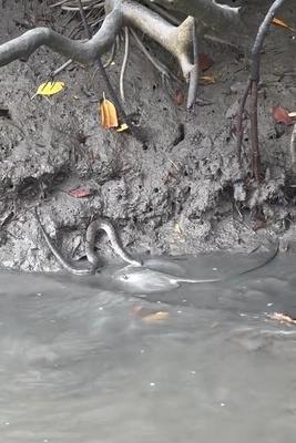 ویدیوهای پربازدید حیات وحش؛ تا حالا مارِ پُررو دیده بودین؟ مار، سفرهماهی شکار کرده به زور میخواد ببره خشکی؛ از رو هم نمیره😲