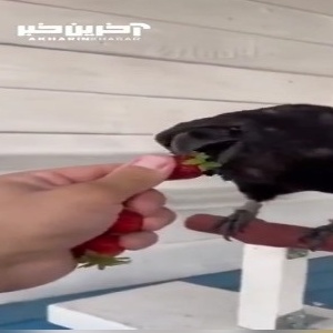 حرکت عجیب و جالب کلاغ موقع خوردن توت فرنگی!؛ چقدر این پرنده باهوشه+ویدئو
