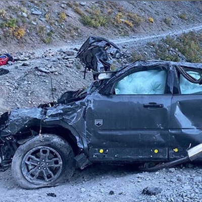 ویدیو شوکه کننده از معلق زدن ماشین شاسی بلند در لحظه گردش به چپ