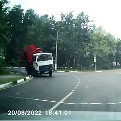 ببینید| واژگون شدن ناگهانی کامیونی در وسط شهر/ آخه این میزان سرعت لازم بود واقعا!
