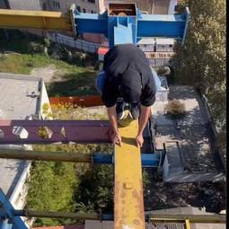حرکت خطرناک جوان از بالای ساختمان نیمه کاره/ فک کنم از عزرائیل آتو داشت!!