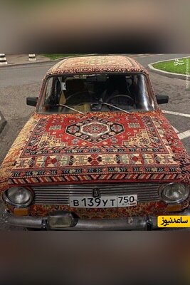 (فیلم) خلاقیت خنده دار یک مرد در فرش کردن ماشینش! / برف و بارون بیاد باید فرشا رو پارو کنه!😂