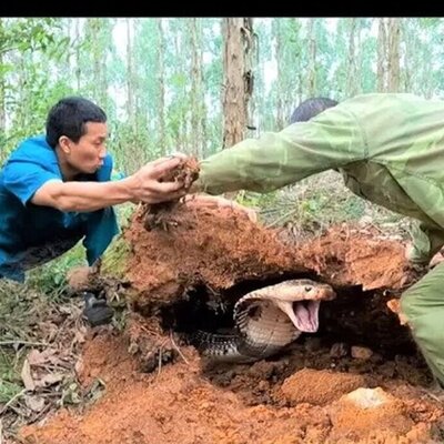 (ویدئو) مهارت دو شکارچی ویتنامی در زنده گیری 4 مار کبرای سمی و کمیاب از زیر زمین