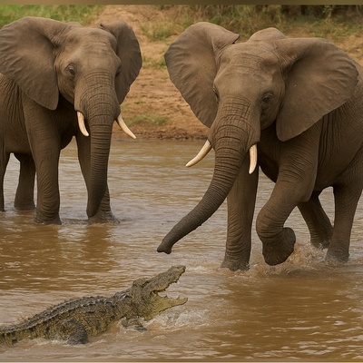حیات وحش ؛ مستند حیات وحش حیوانات / نبرد دیدنی یک کرورکودیل در محاصره چند فیل در رودخانه