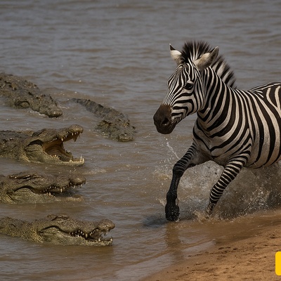 حیات وحش ؛ مستند حیات وحش حیوانات / نبرد دیدنی یک گورخر در محاصره چند تمساح در رودخانه!