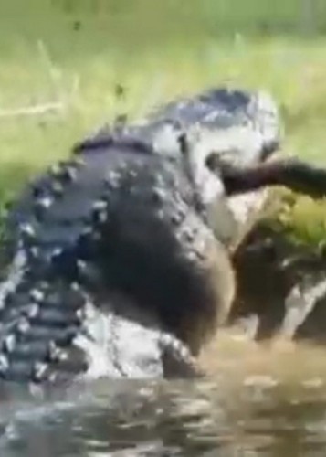 (فیلم) لحظه دردناک بلعیدن بچه تمساح توسط تمساحی غول پیکر