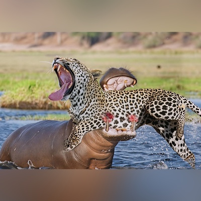 (ویدیو) جسارت و رویارویی وحشیانه تولهپلنگها با اسب آبی/ لحظاتی پرتنش و هیجانانگیز!