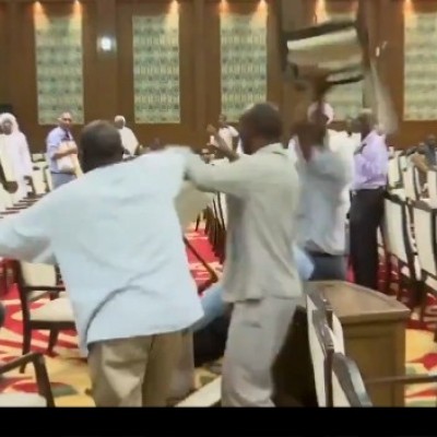 (فیلم) درگیری و کتک کاری شدید در پارلمان سودان
