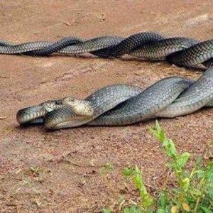 (فیلم) جفتگیری دو مار بزرگ جاده را بست!