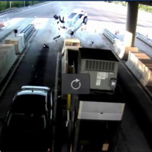 (فیلم) تصادف وحشتناک خودرو با دیوار عوارضی