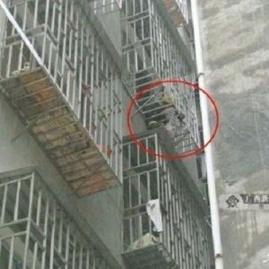 (فیلم) نجات کودک آویزان از نرده محافظ پنجره