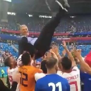 (فیلم)شادی اردوی تیم ملی فوتبال و پرتاب کی روش به هوا