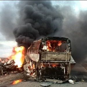 (فیلم) انفجار اتوبوس پر از مسافر در خیابان